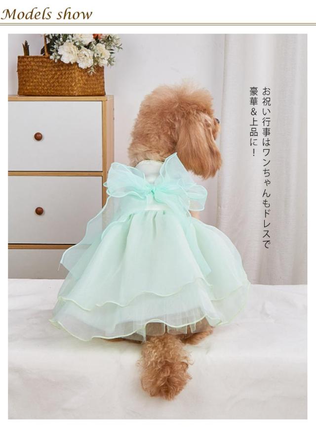 | XS-XL お上品でとても可愛らしい素敵なドレスです。 伸縮性はございませんが、マジックテープ使用で着せやすいです。 お祝い行事はワンちゃんもドレスで豪華&上品に! | |