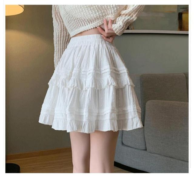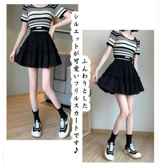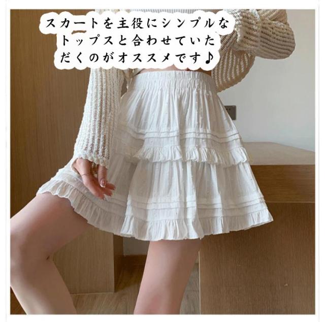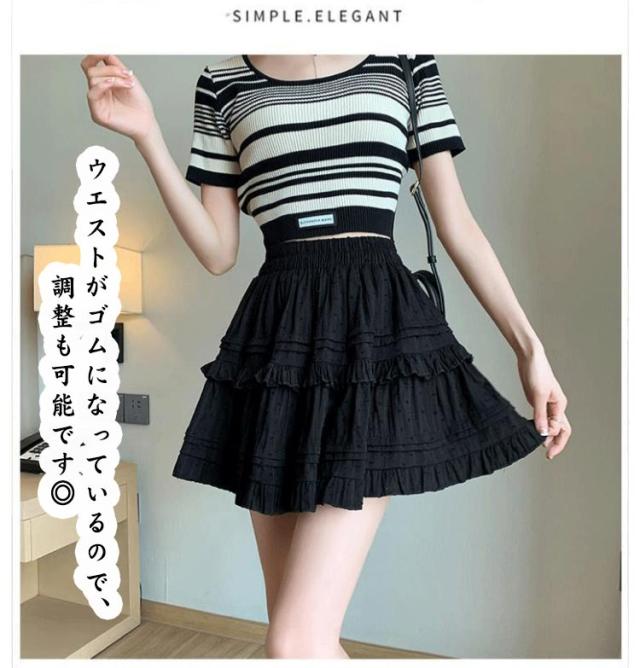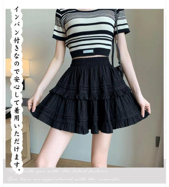 ショート ウエストゴム Aライン ドット フリル インパン付き レディース ミニスカート 裏地付き ハイウエスト ミニスカート フレアスカート カジュアル 美脚 ボトムス 脚長効果 きれいめ お洒落 可愛い