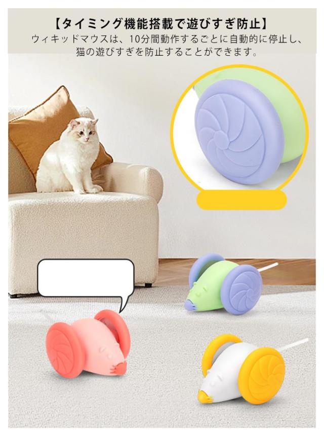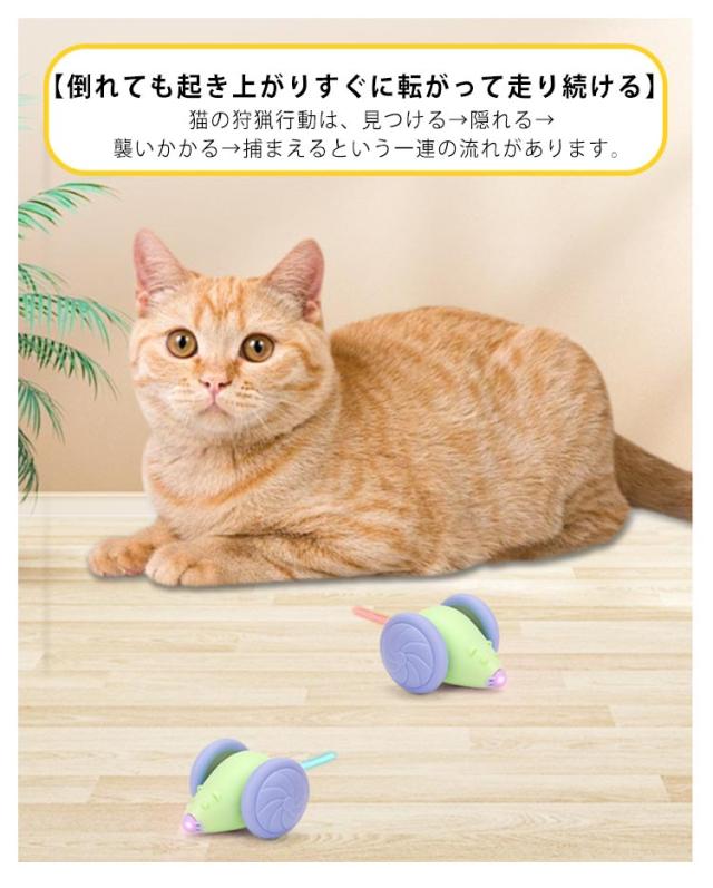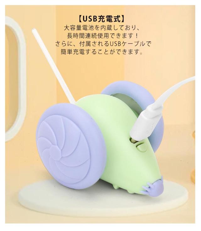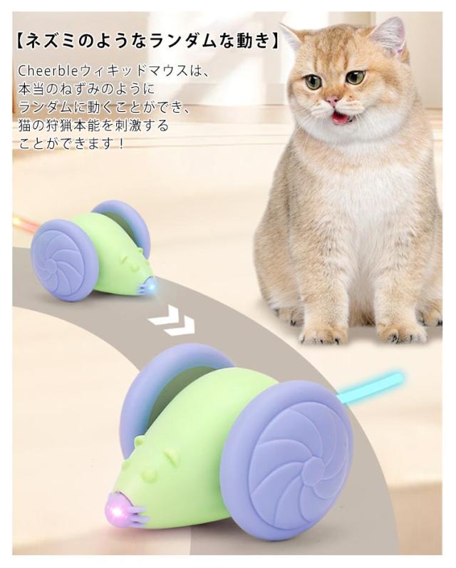 | 運動不足解消! ストレス解消!! 猫ちゃんが大興奮! 360°自動走行・充電式・LEDライト付き ねずみ型おもちゃ 【商品の特徴】 ポイント1:ねずみのようなランダムな動き&スピード感が猫の狩猟本能を刺激します! ポイント2:室内に最適で、楽しみが広がります! ポイント3:障害物回避センサー搭載で、隅っこで動けなくなるような心配はいりません! ポイント4:虹色にピカピカ光るしっぽで、愛猫の興味を引き出せます! ポイント5:倒れても、起き上がり、すぐに転がって走り続けることができます! ポイント6:ネズミの鼻を押すだけ遊べるの簡単操作! ◆Point 1◆【猫が楽しく遊べる電動おもちゃ】 ウィキッドマウスは、いつもひとりぼっちの猫、仕事後で帰っても疲れてあまり一緒に遊べてなくの飼い主さんのために開発した猫が楽しく遊べる猫用おもちゃです! ネズミをモチーフにした電動の猫用おもちゃで自動走行してあっちこっちと自走するので、猫の狩猟本能をくすぐり好奇心を刺激してくれます! 自由自在に動き回る電動ネズミがあれば、飼い主さんと一緒に遊んでも、ひとり寂しいお留守番でも、愛猫が飽きずに喜んで遊んでくれるでしょう! 一人留守番時の猫のストレス解消と運動不足解消にピッタリです。 ◆Point 2◆【ネズミのようなランダムな動き】 Cheerbleウィキッドマウスは、本当のねずみのようにランダムに動くことができ、猫の狩猟本能を刺激することができます! ◆Point 3◆【虹色にピカピカ光るしっぽ】 電動ネズミの稼働中は、尻尾の部分がピカピカとレインボーに光りながら、自由自在に走り回って猫の興味を引きます。動きのある光に反応する猫は多く、動き続ける電動ネズミの光を追って、飽きずに追いかけてくれます! ◆Point 4◆【ねずみの鼻を押すだけ遊べる簡単操作】 起動ボタンはネズミの鼻にデザインされており、鼻を3秒間長押しするだけで電源ON/OFFでき、操作が超簡単です! ◆Point 5◆【倒れても起き上がりすぐに転がって走り続ける】 猫の狩猟行動は、見つける→隠れる→襲いかかる→捕まえるという一連の流れがあります。ウィキッドマウスは、こうした一連の流れを再現することができます!追いかけっこで猫がネズミに飛びかかっても止まらず、すぐに転がって走り続けることができます。充電切れかスリ | |