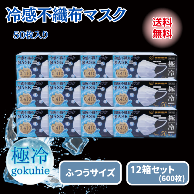 冷感不織布マスク 50枚入り ふつうサイズ 【12箱セット】