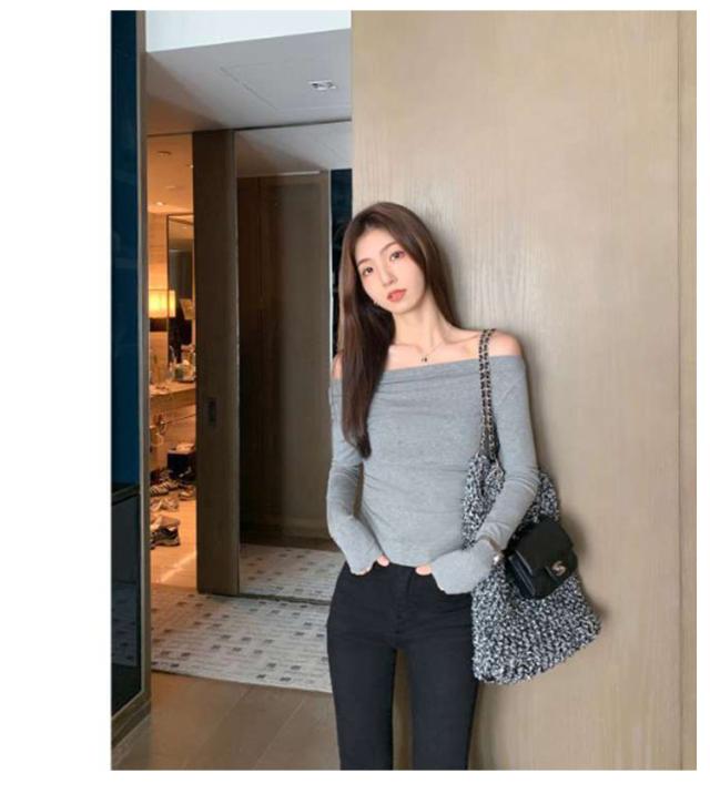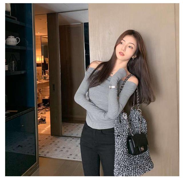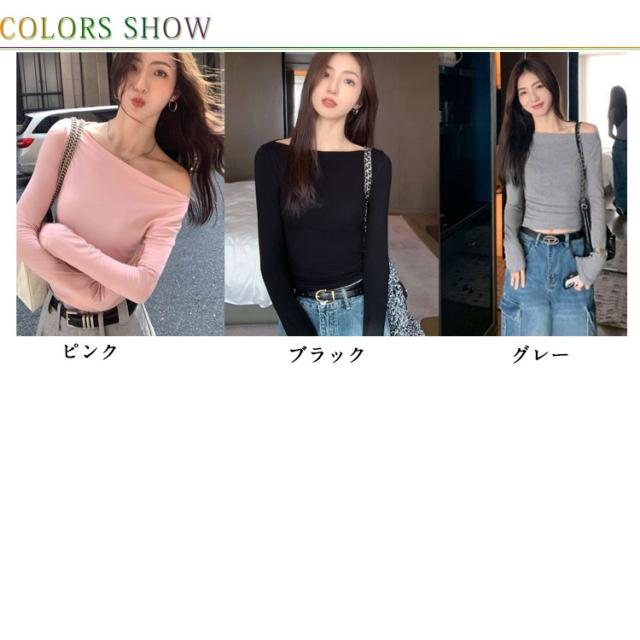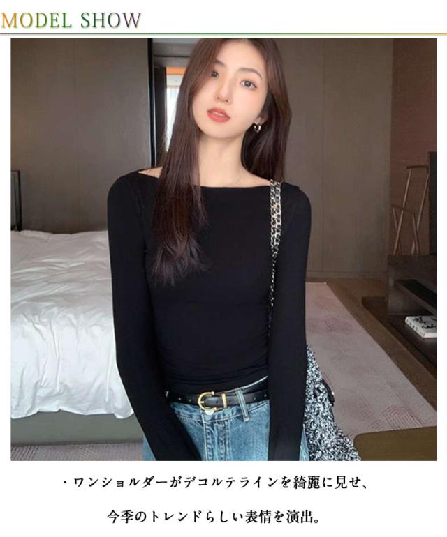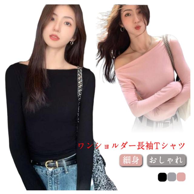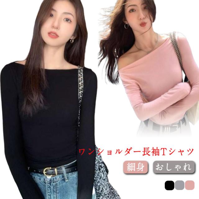 ワンショルダー Tシャツ オフショルダー ロンT スリム レディース トップス タイト 細身 ワンショルダー カットソー 薄手 おしゃれ きれいめ 春