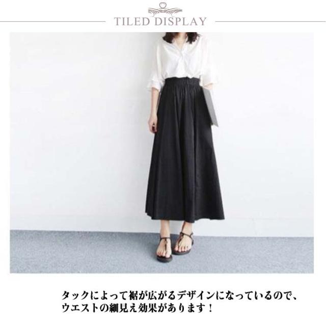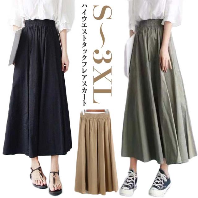 ハイウエスト フレアスカート レディース ロングスカート ゆったり 春 ロング スカート 秋 マキシスカート カジュアル ハイウエスト 夏 タック Aライン オフィス ウエストゴム 体型カバー 無地 シンプル ナチュラル