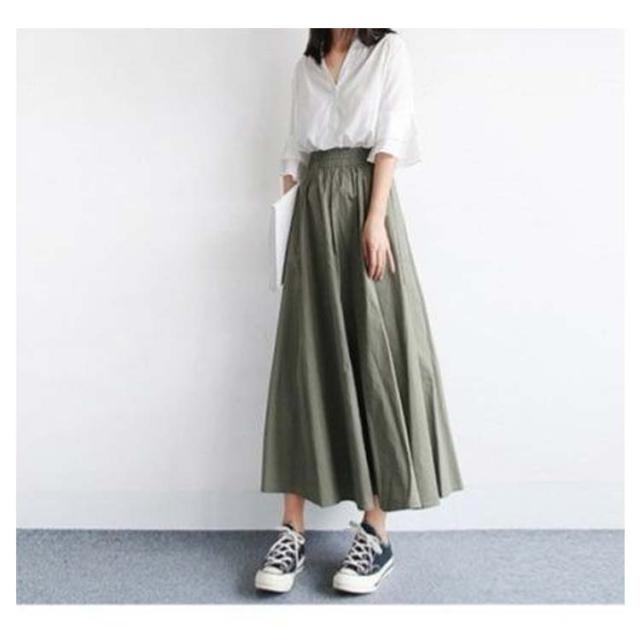 | ハイウエストタックフレアスカート S〜3XL タックによって裾が広がるデザインになっているので、ウエストの細見え効果があります! ウエストゴムになっているので、楽に着用していただけます♪ ボリューム感のあるスカートなので、ショート丈やコンパクトなトップスと相性が良いです!あえてオーバーサイズのスウェットやTシャツをアウトして着ていただくのも◎ | |