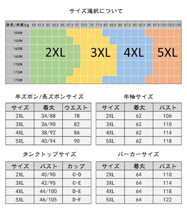 | サイズについての説明 | 【セット内容】5点セット:パーカー、シャツ、ブラ、パンツ(短/長) ※サイズ表の実寸法は商品によって1-3cm程度の誤差がある場合がございます。 |