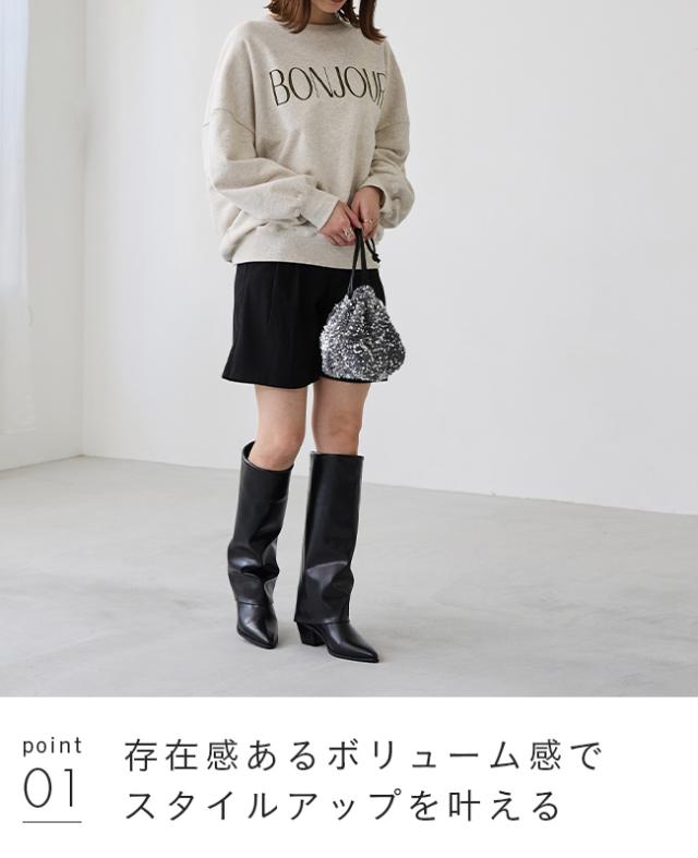 ミニボトムスはもちろん、足を出すのに抵抗がある方は、デニムをインして履いたり、ロングブーツと合わせるとワンランク上の着こなしができちゃいます♪