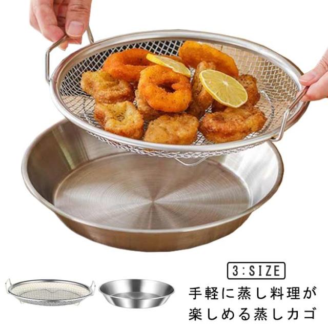 油切り 皿 水切り 蒸しざる 蒸し器 せいろ 蒸しがご 蒸し野菜 温野菜 調理 脚付き ステンレス かご 網 セット 蒸し野菜 揚げ物かご オイルカッティングパン ざる キッチン用品 蒸す 便利 水切ざる 揚げ物ざる 送料無料