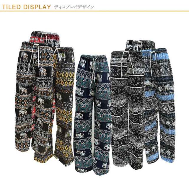 タイパンツ レディース ワイドパンツ 春夏 エスニック アジアン 可愛い ゾウ柄 部屋着 ルームウェア ロングパンツ 軽い ストレート ヴィンテージ カジュアル 薄手 体型カバー イージーパンツ 送料無料