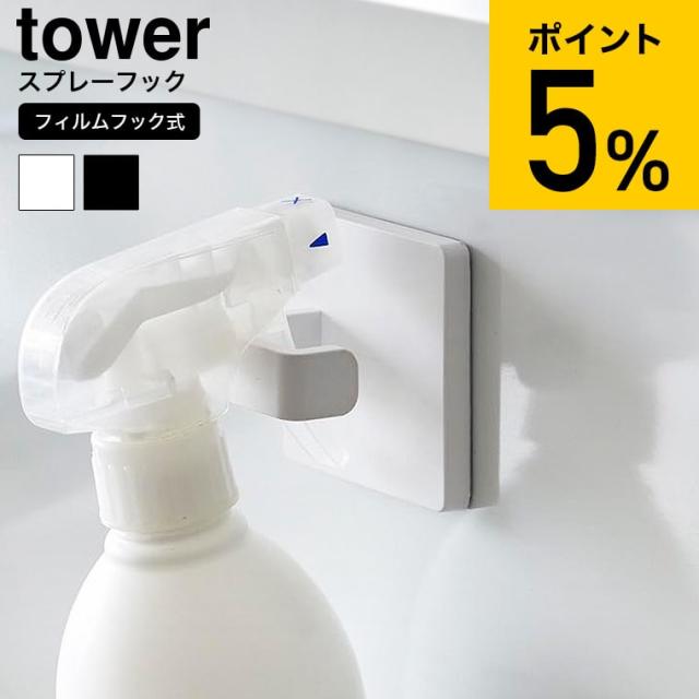 山崎実業 公式 tower フィルムフックスプレーフック タワー 山崎実業 公式 tower 1907 1908 ホワイト ブラック ハンガー スプレーボトル 電源コード コンセント キッチン 洗面所 引っ掛け タワーシリーズ yamazaki