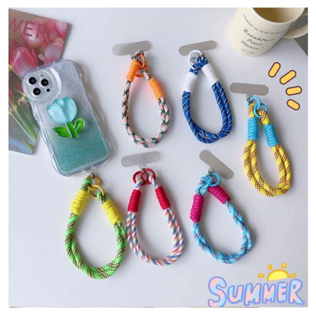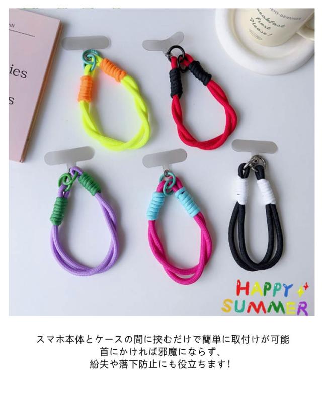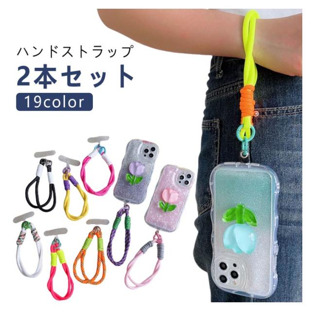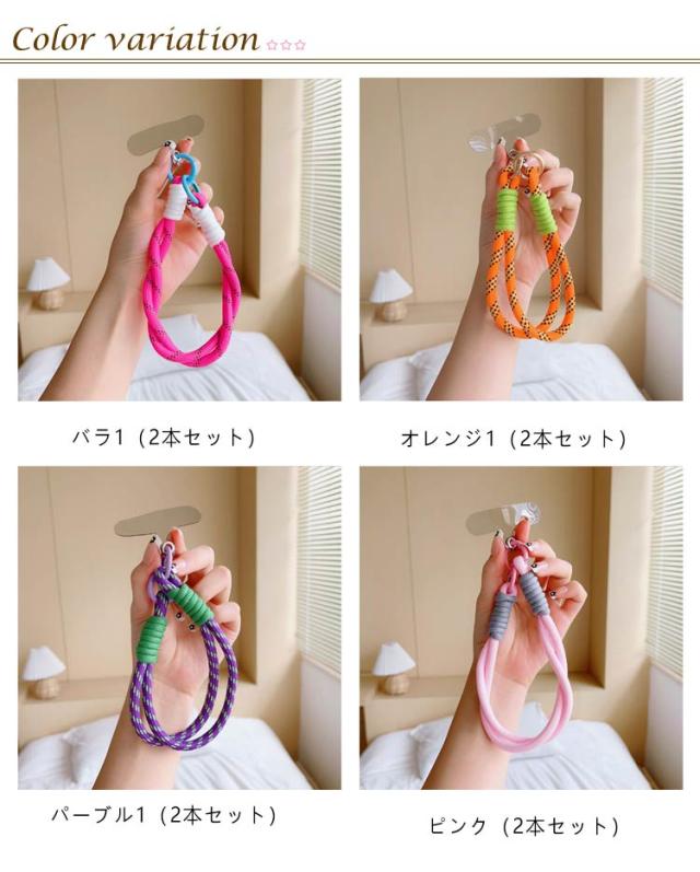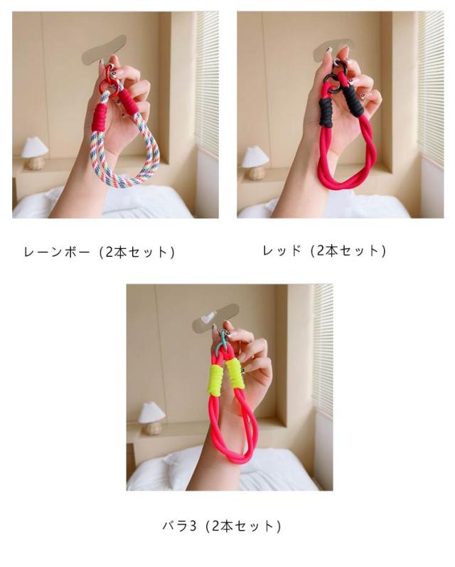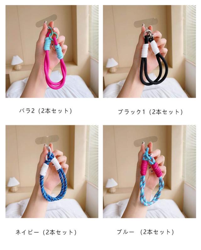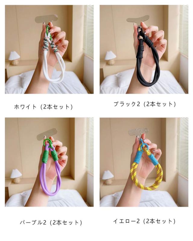 ハンドストラップ 2本セット スマホストラップ ショートストラップ リストストラップ 手首 手ぶら 落下防止 紛失防止 挟むだけ ロープ 紐 可愛い おしゃれ カラフル バイカラー パラコード スマートフォン 携帯電話 充電口 全機種対応 カラビナ 短い