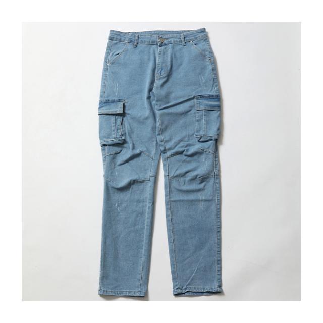 ワイルドでスタイリッシュなデニムカーゴパンツ