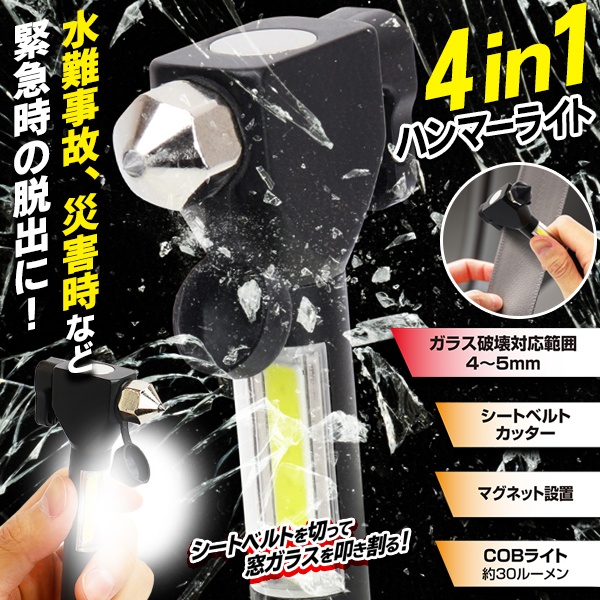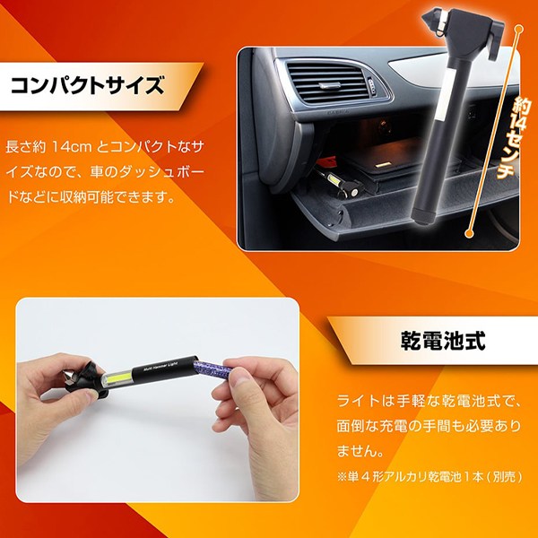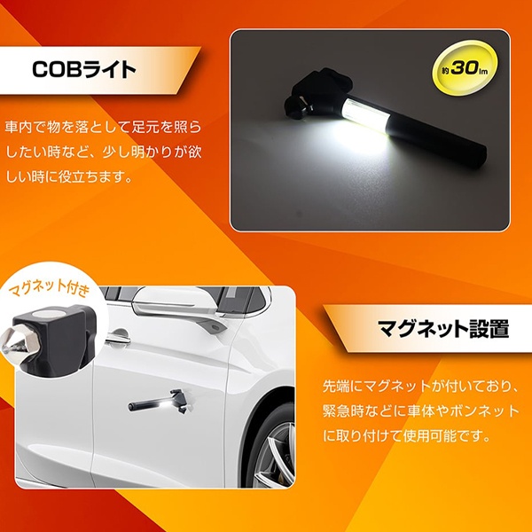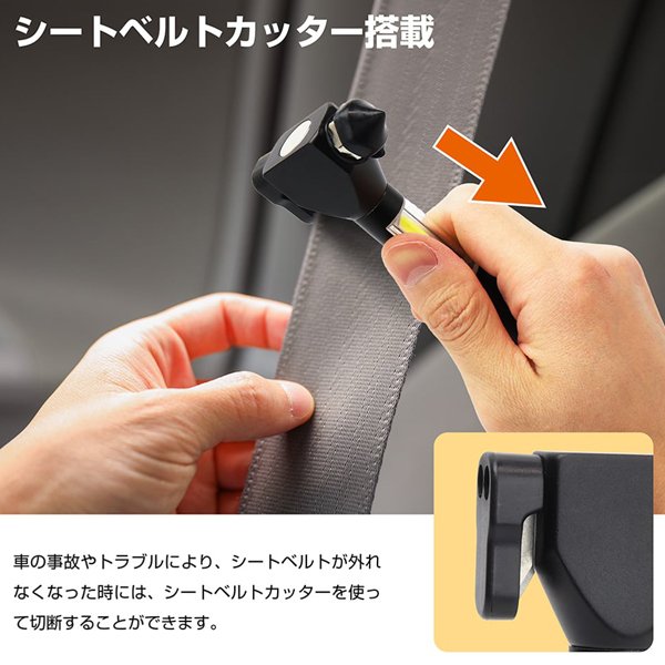 緊急脱出用ハンマー 車載 シートベルトカッター ライト搭載 サイドガラス 割る 切る 道具 ガラスハンマー 車内 防災グッズ 非常用 災害時 事故 浸水 マルチハンマー【 カー用品 車用品 便利グッズ 窓ガラス ウィンドウ ウインドウガラス 】 /60N◇ ハンマーライト