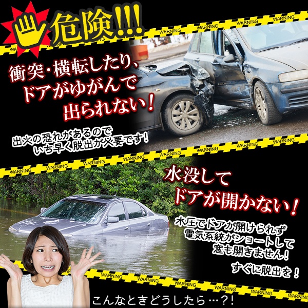 | 水難事故、災害時など緊急時の脱出に! もしもの時に、お車やご家庭に備えて安心。 | |||||||||||