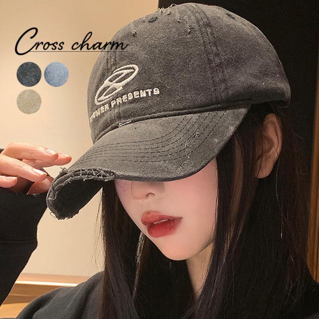 ダメージ ウォッシュ ピグメント 刺繍 ロゴ ベースボール Y2K ストリート キャップ HEADWEAR ヘッドウェア