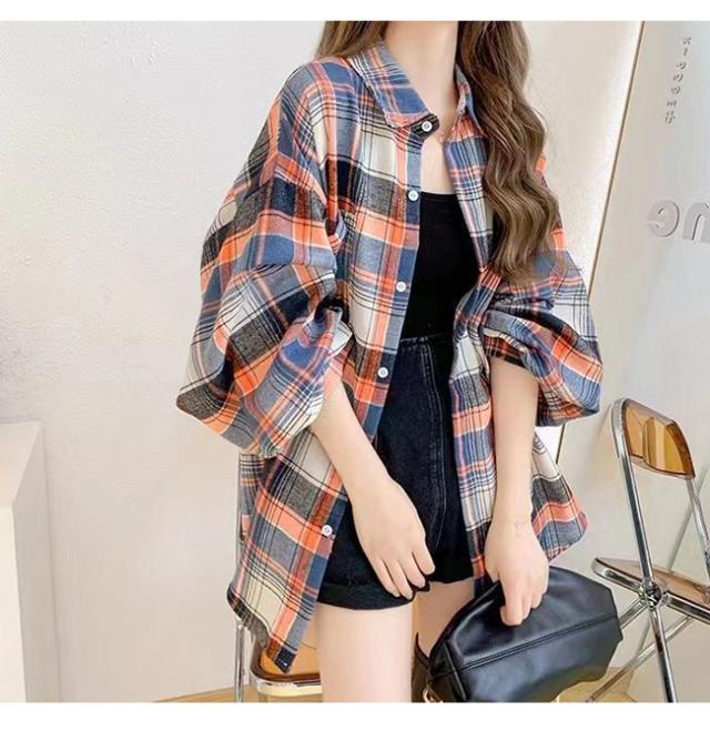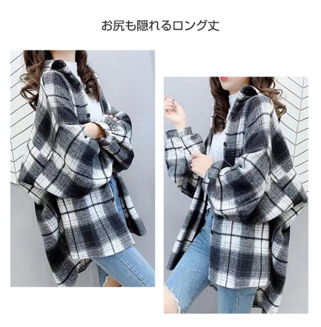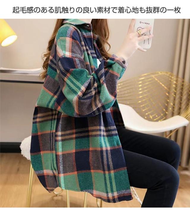 秋新作 チェックシャツ レディース ロングシャツ カットソー 長袖 シャツ トップス チェック柄 ブラウス ゆったり 大きいサイズ おしゃれ