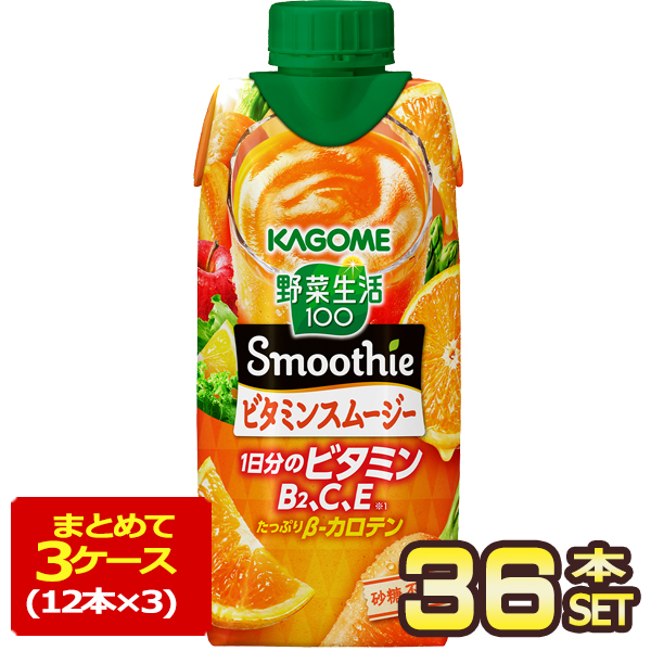 [送料無料] カゴメ 野菜生活100 スムージー ビタミンスムージー 330ml紙パック×36本[12本×3箱]【3〜4営業日以内に出荷】 野菜ジュース 野菜生活 スムージー