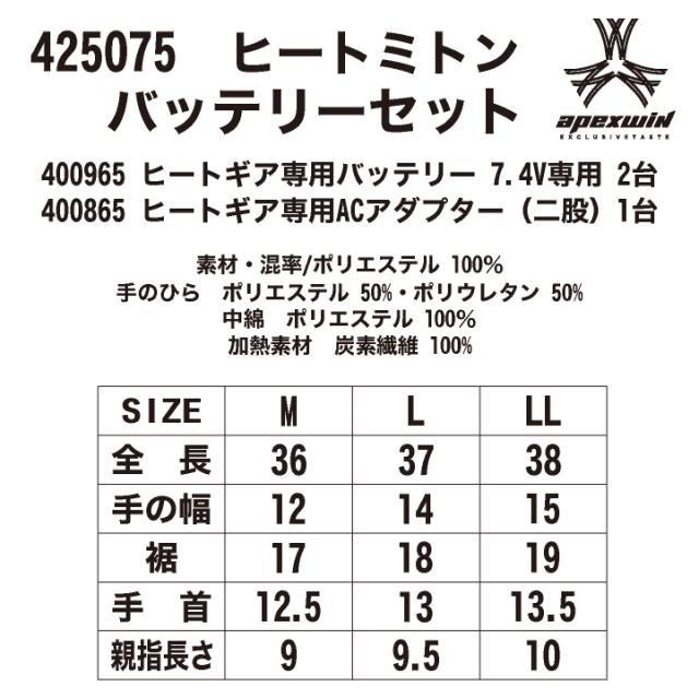 アタックベース 電熱手袋 ヒートミトン 秋冬 メンズ レディース 7.4Vバッテリー 防水 防風 おしゃれ 防寒グッツ 暖かい 電熱ウェア at-425075