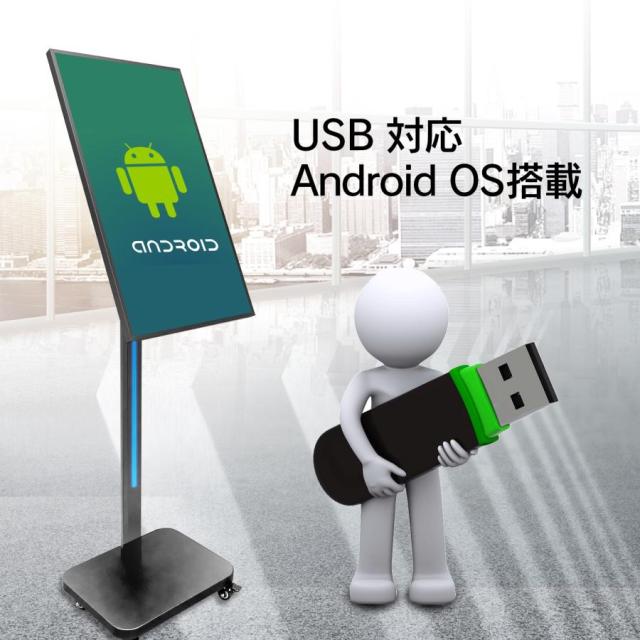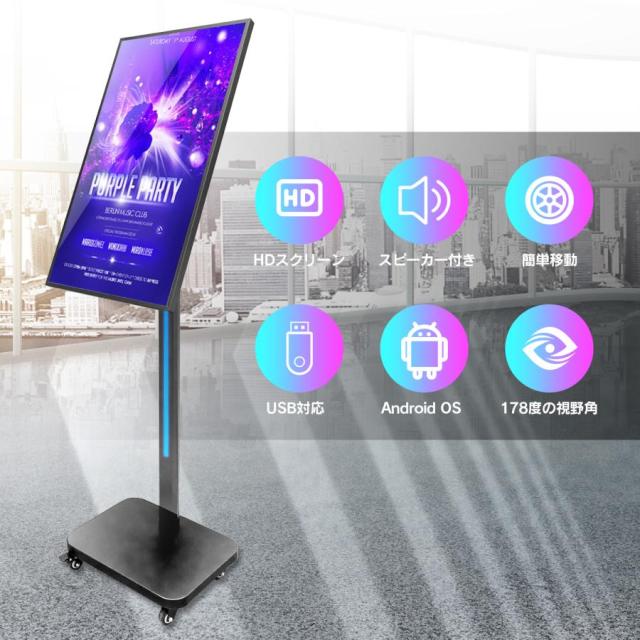 デジタルサイネージ 32インチ 看板 スピーカー デジタル看板 液晶モニター ディスプレイ 強化ガラス 落下防止 HDスクリーン 移動 USB Android オフィス 飲食店