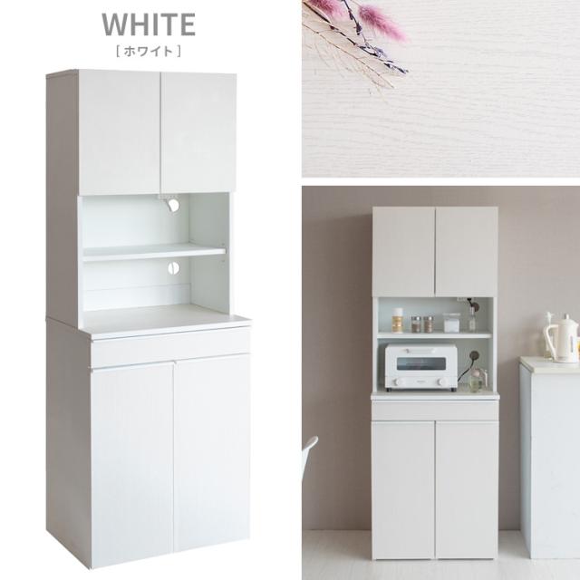 ゴミ箱上ラック キャスター付き 60幅 食器棚 レンジ台 キッチン収納棚 コンセント付き 引き出し おしゃれ ゴミ箱が置ける キッチンラック レンジラック 大型レンジ対応 家電収納 木製 幅60cm 奥行42cm 高さ170cm ホワイト 白 ナチュラル ブラウン 省スペース コンパクト