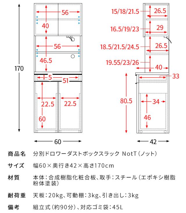 備考 組立式(約90分)、対応ゴミ袋:45L