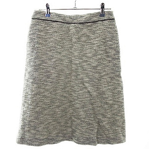 【中古】ブリスポイント フレアスカート ひざ丈 サイドファスナー 総柄 M グレー 白 ホワイト レディース