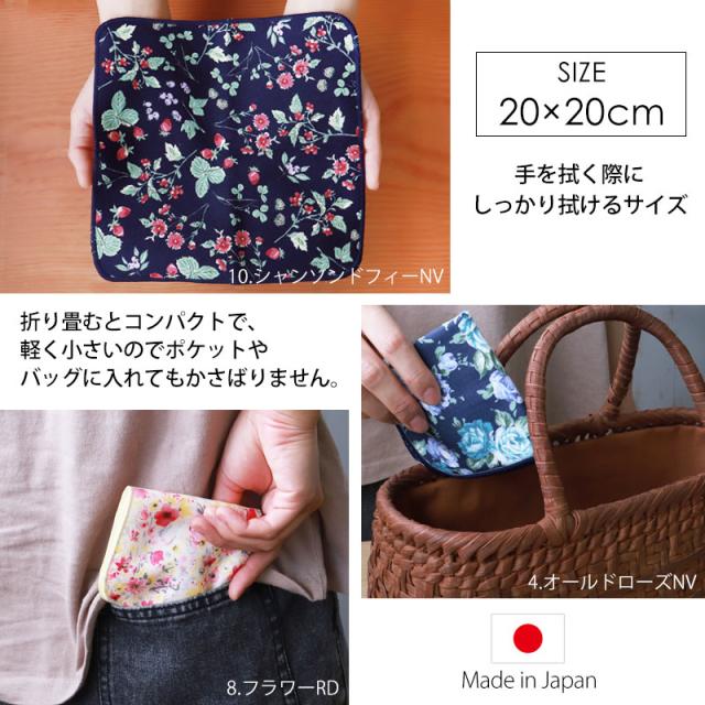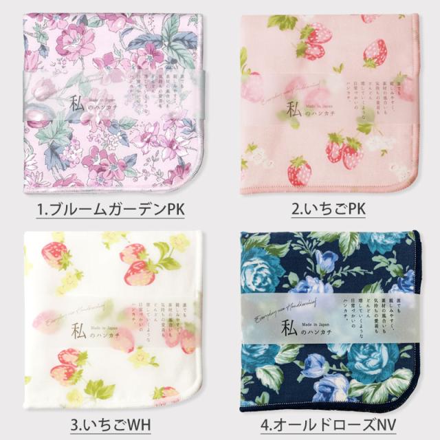 ハンカチ 日本製 20cm×20cm ハンドタオル かわいい おしゃれ プチギフト 綿100% 裏面 ガーゼ生地 吸水 ガーゼハンカチ 女性向け レディース 個包装 私のハンカチ 花柄 薔薇 イチゴ