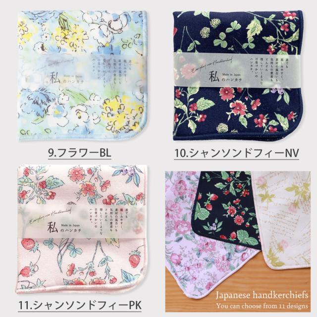 11柄と色数豊富なので、結婚や出産の内祝いや退職の御礼、引っ越しのご挨拶、イベントの粗品などのプチギフトにもオススメ!ハンカチ 日本製 20cm×20cm ハンドタオル かわいい おしゃれ プチギフト 綿100% 裏面 ガーゼ生地 吸水 ガーゼハンカチ 女性向け レディース 個包装 私のハンカチ 花柄 薔薇 イチゴ