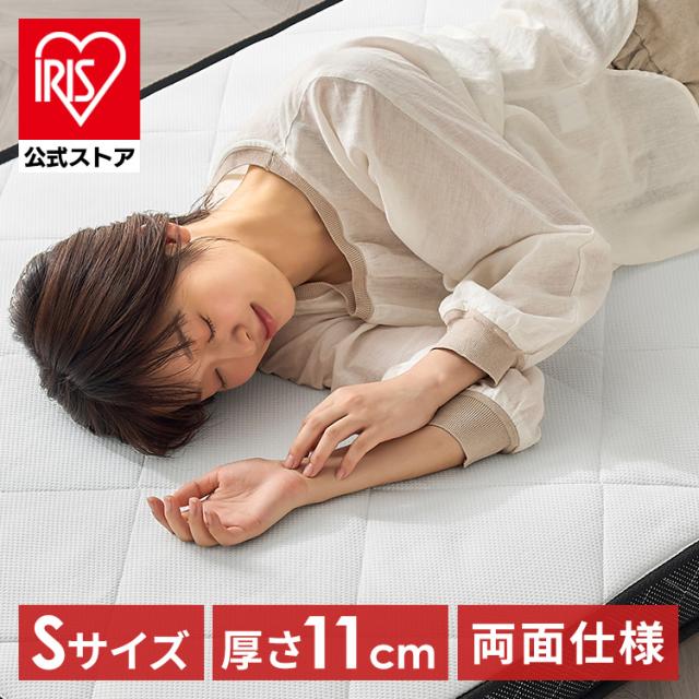 マットレス シングル 三つ折り 折りたたみ 10cm 以上 11cm 硬め 柔らか リバーシブル ポケットコイル コンパクト 軽量 折り畳み 敷布団 アイリスオーヤマ PMTS11S-3S