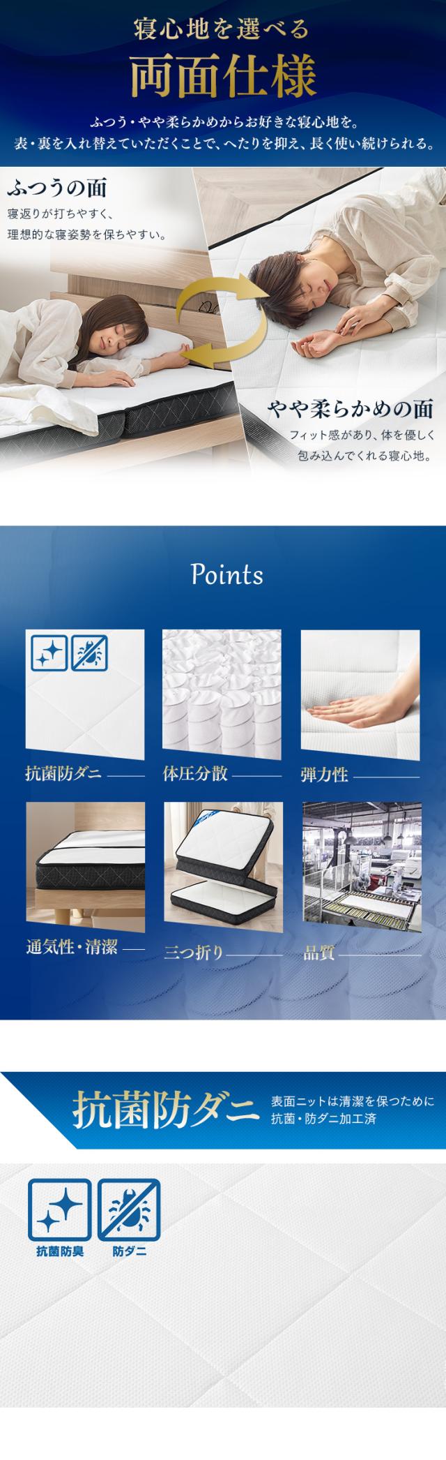 硬め・柔らかめの寝心地が選べる両面仕様。