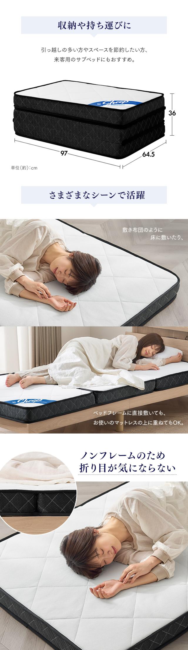 敷き布団のように床に敷いたり、ベッドフレームに直接敷いてもお使いのマットレスの上に重ねてもOK。