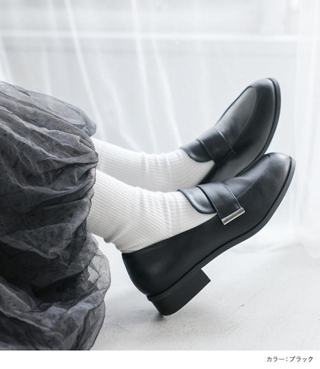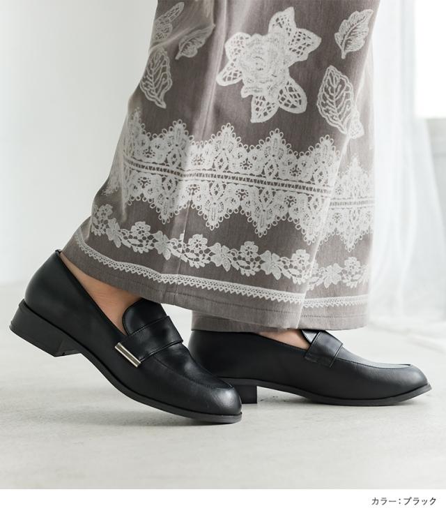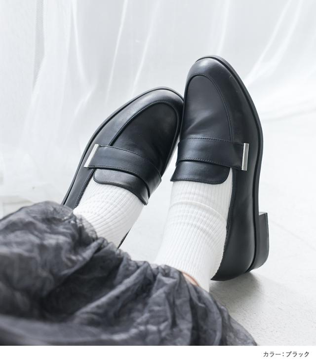 『プレートアクセントローファー』【メール便不可】【80】[ローファー レディース シューズ 靴 革靴 レザー シンプル 普段使い デイリー 歩きやすい 高見え シワ感 合皮 フェイクレザー カジュアル きれいめ オシャレウォーカー]