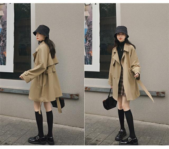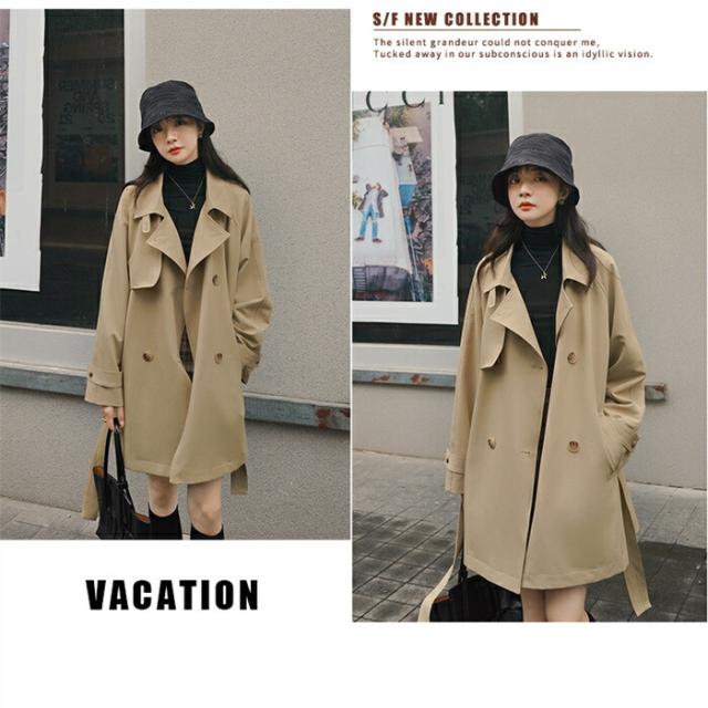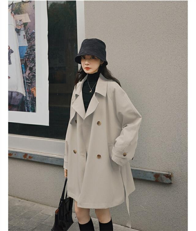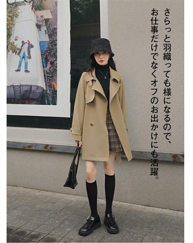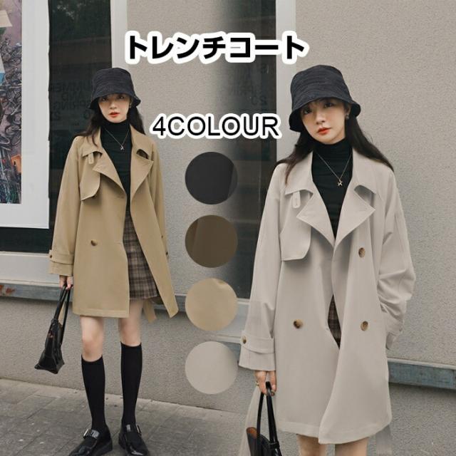 2023新作 トレンチコート レディース 春 秋 冬 スプリングコート ショートコート トレンチ アウター コート 大きいサイズ ビッグ ドロップショルダー シンプル デザイン ゆったり