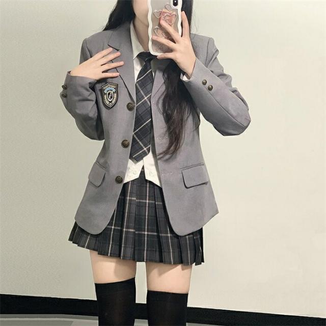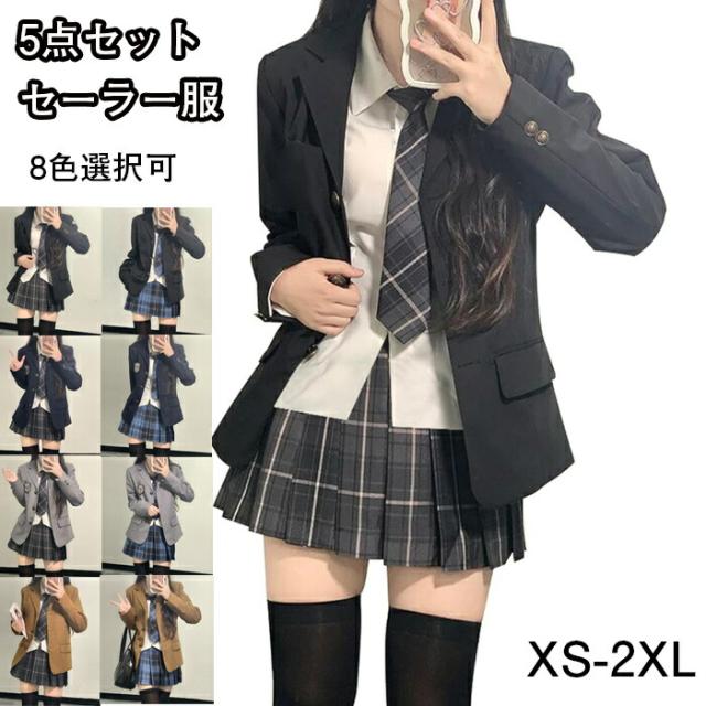コスプレ 制服 jk 女子高生 5点セット ブレザー スカート シャツ ネクタイ バッジ コスプレ 学生服 セーラー服 スクール 高校生制服 入学式 卒業式 学園祭 文化祭 パーティ XS-2XL