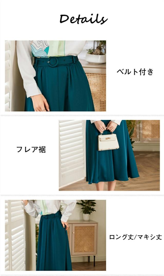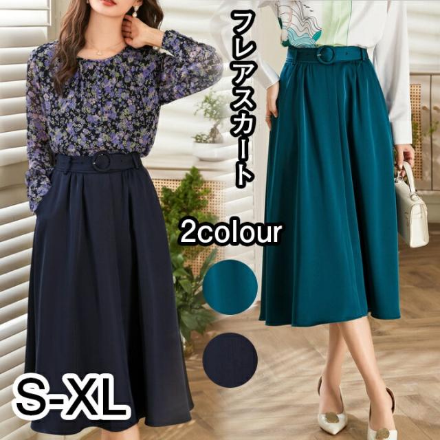 フレアスカート スカート ロングスカート ミディアムスカート レディース 春 夏 秋 フレア フレアスカート 大きいサイズ Aライン きれいめ ふんわり ダークグリーン ネイビー S-XL