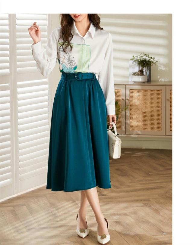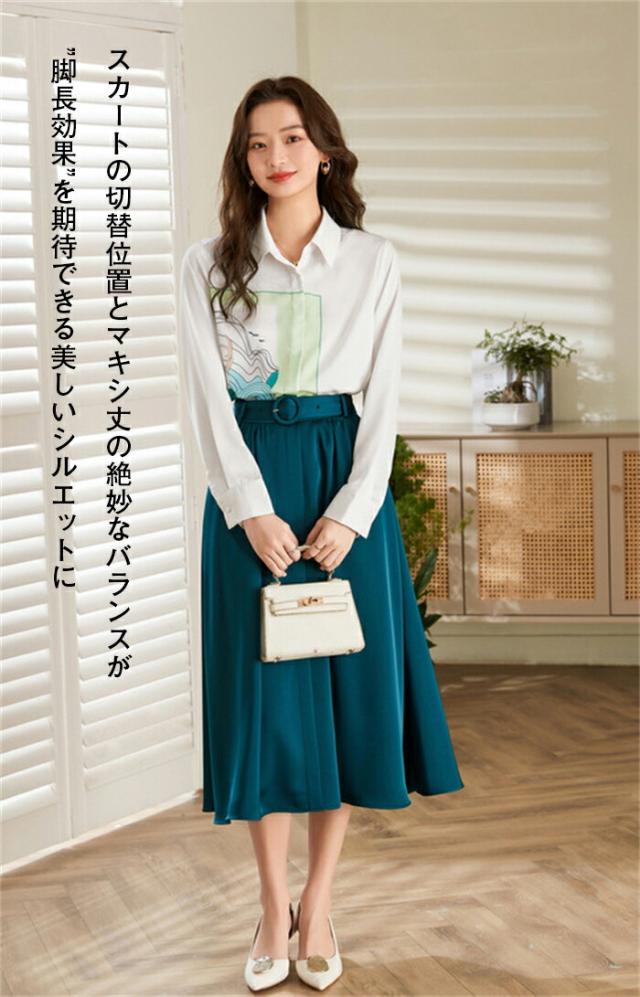 スカートの切替位置とマキシ丈の絶妙なバランスが”脚長効果”を期待できる美しいシルエットに生産国 中国