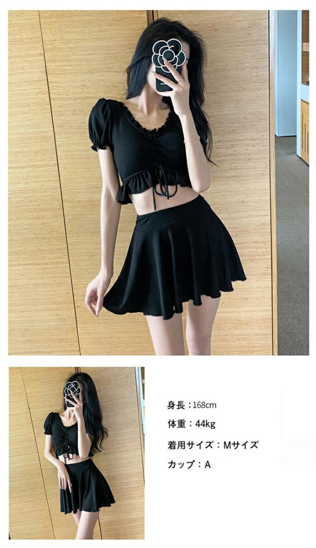 水着 レディース ビキニ フリル スカート 体型カバー 3点セット M-XLレディースファッション 水着