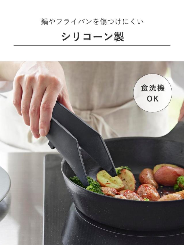 シリコーン製で滑りにくく、熱に強く、弾力性に優れ、鍋・フライパンなどを傷つけません。滑りにくいので、食材をお皿に移す際も安心です。