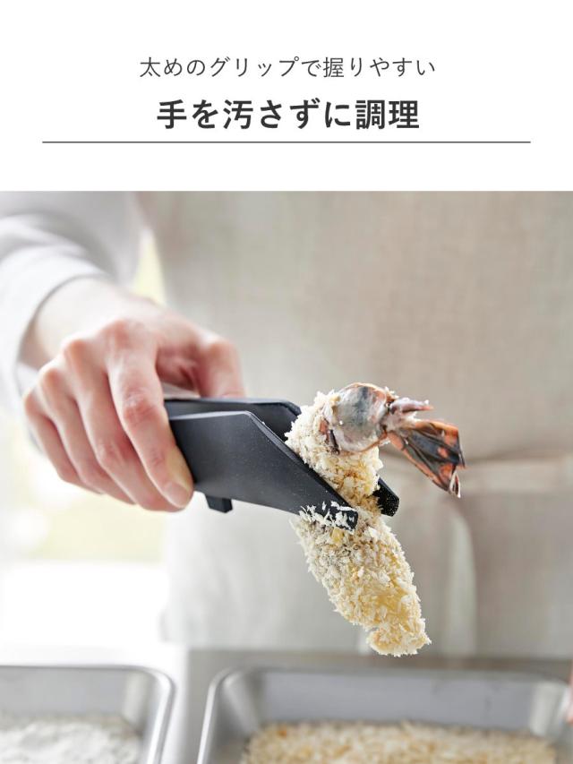 太めのグリップで握りやすいミニトングです。揚げ物の衣を付ける時など手を汚さずにできるので、手を洗う回数が減り調理がはかどります。