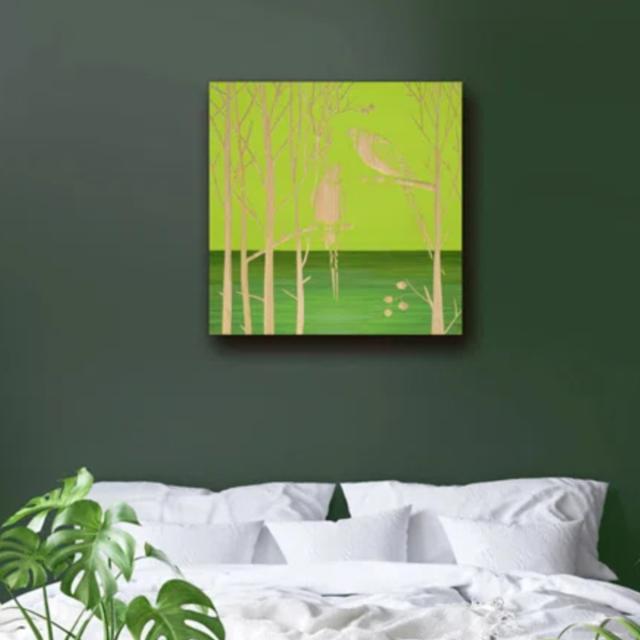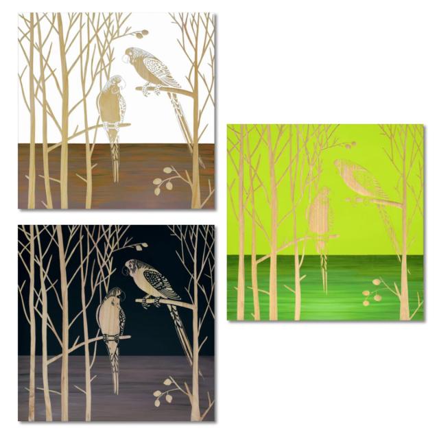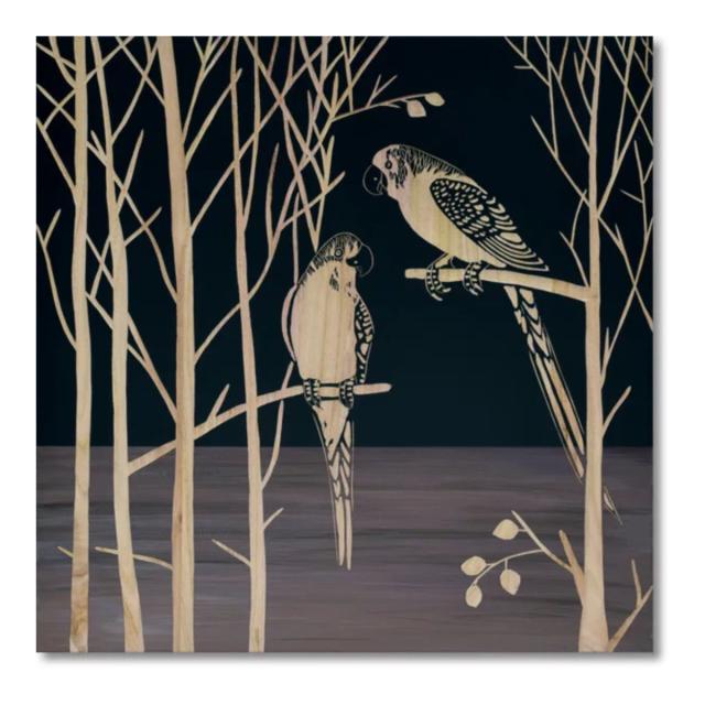 ●しなやかな木にかわいらしいオウムが印象的なアートです。