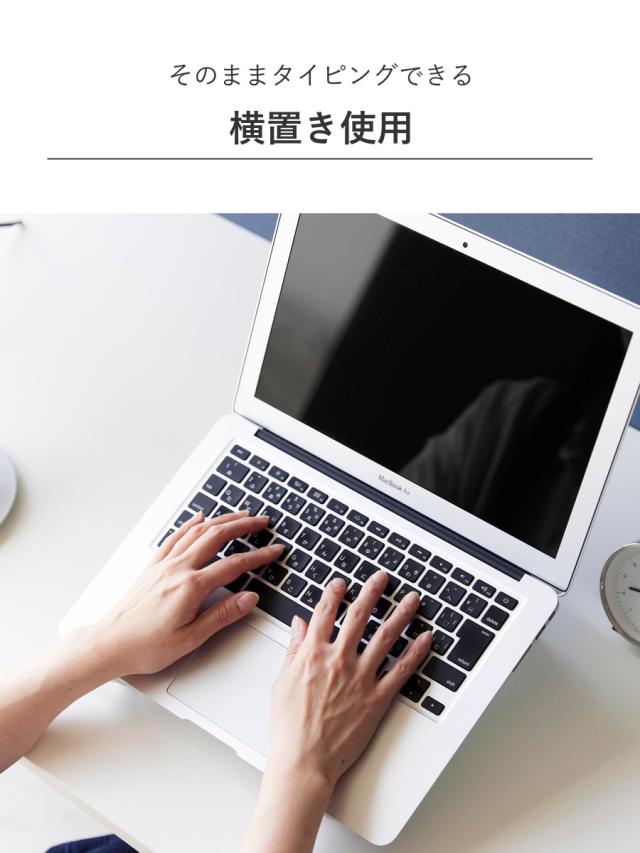 横置き使用時には、そのままタイピングすることができます。使いやすい高さ・角度で、作業効率がアップします。