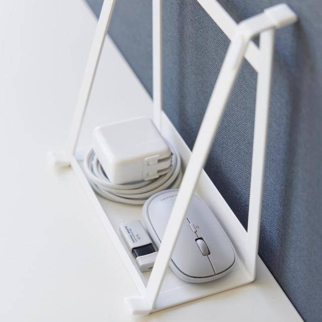 縦置き使用時では、PCを立てかけたり、タブレットPCのスタンドとしてもおすすめです。マウスや充電器、USBメモリなどの小物も収納できます。