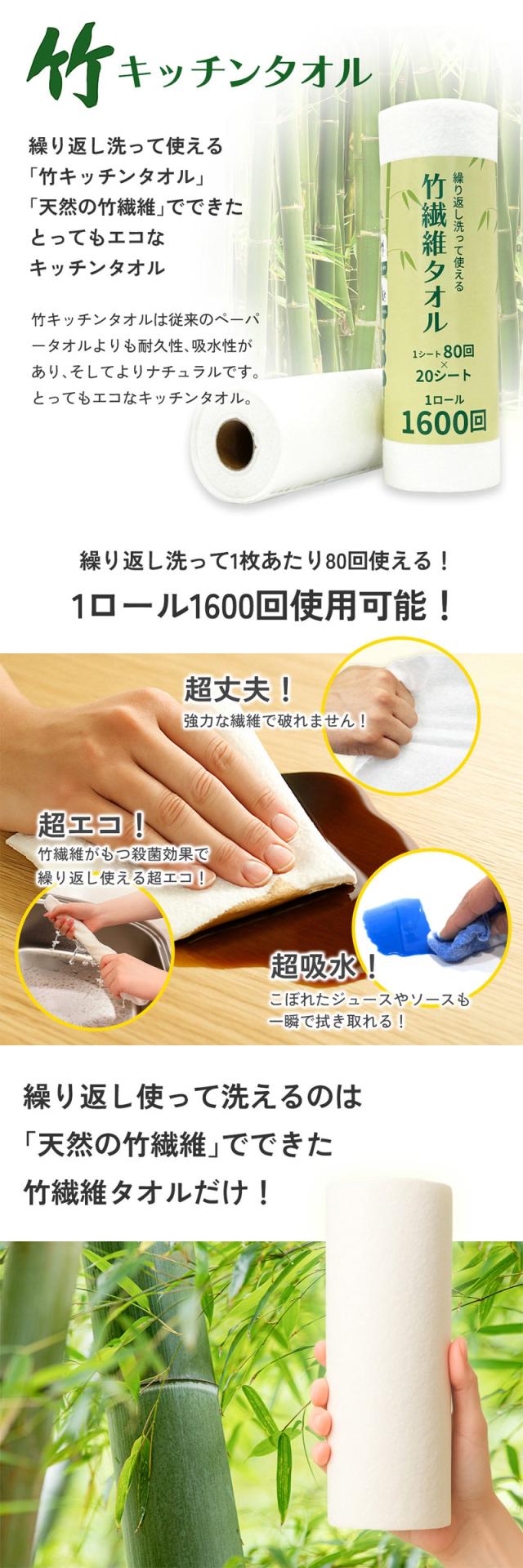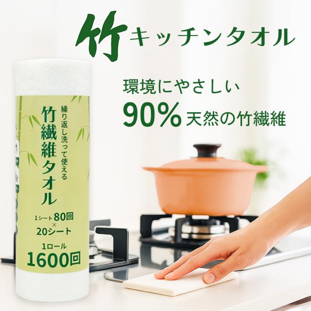 【1枚で80回使える】5本セット キッチンペーパー キッチンタオル ペーパータオル キッチンクロス ケース まとめ買い エコ 厚手 キッチン ペーパー タオル 破れにくい 家庭用 業務用 大判 日用品 再利用 竹 ふきん bamboo 20シート入り「マイリンク」MiLink BA90 [白]