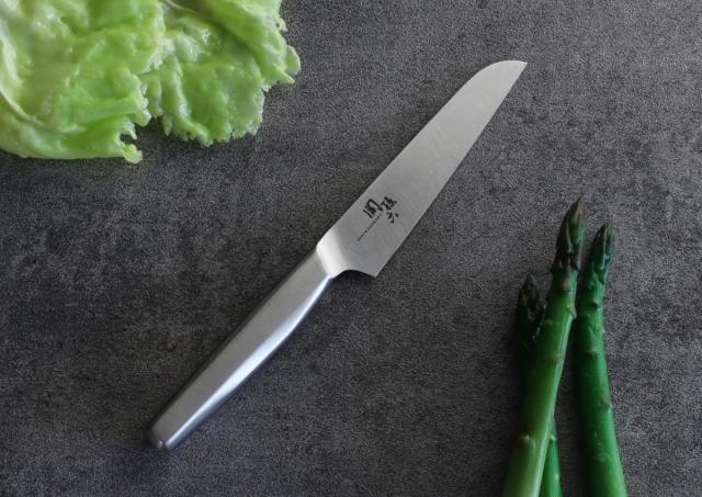 刃渡り12cmと短く、ペティナイフのように小回りの利くコンパクトサイズです。野菜や果物の皮むき、飾り切りなど細かい作業にも向いています。朝食やお弁当作りなどちょっとした作業にもさっと使えます。