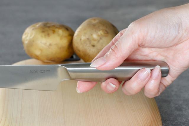 コンパクトナイフながらも、包丁と同じ本格刃付けです。豆腐などの柔らかい食材から、人参やかぼちゃなど硬い野菜までスッと切ることができます。