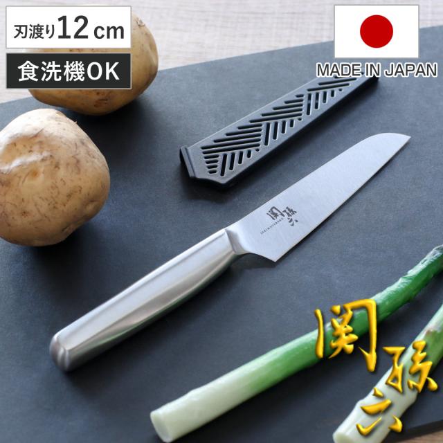 包丁 12cm 関孫六 オールステンレス サヤ付き コンパクトナイフ 日本製 ( 小型ナイフ ペティナイフ 果物包丁 果物ナイフ 食洗機対応 左右兼用 12センチ 120mm カバー付き ナイフ 庖丁 皮むき フルーツナイフ 小型 コンパクト )