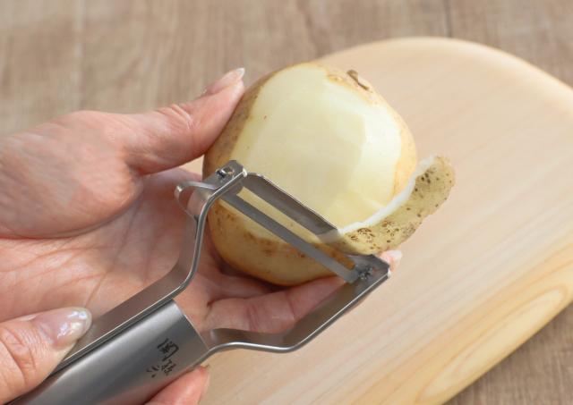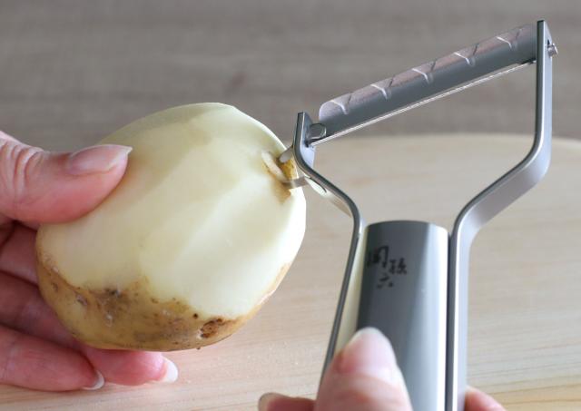野菜の表面を滑るように、軽くて薄い切れ味です。表面が凸凹したじゃがいもの皮むきもストレスなく剥くことができます。また何と言っても、皮を剥いた後の断面が「つるっ、ぴかっ」とした驚くほどきれいな仕上がりです。今までにない食材の美しさを体感していただけます。