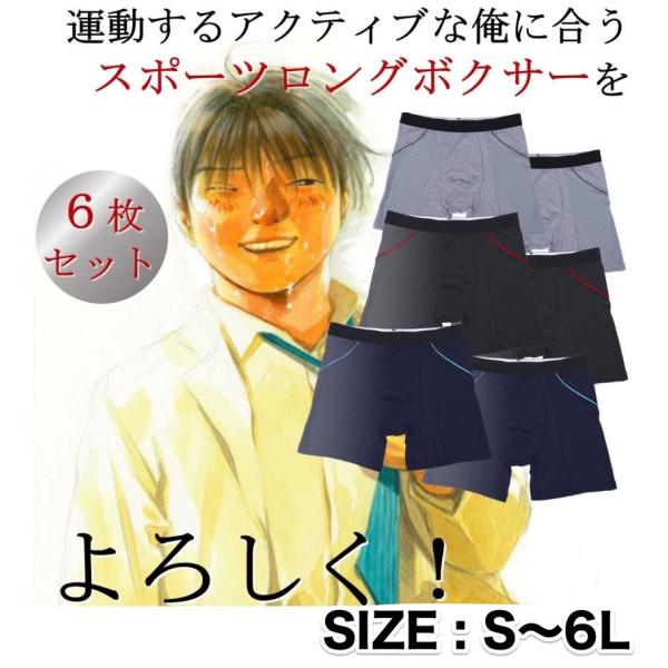 色おまかせ 6枚セット メッシュ ロングボクサーパンツ スポーツ 通気性 メンズ M~5L