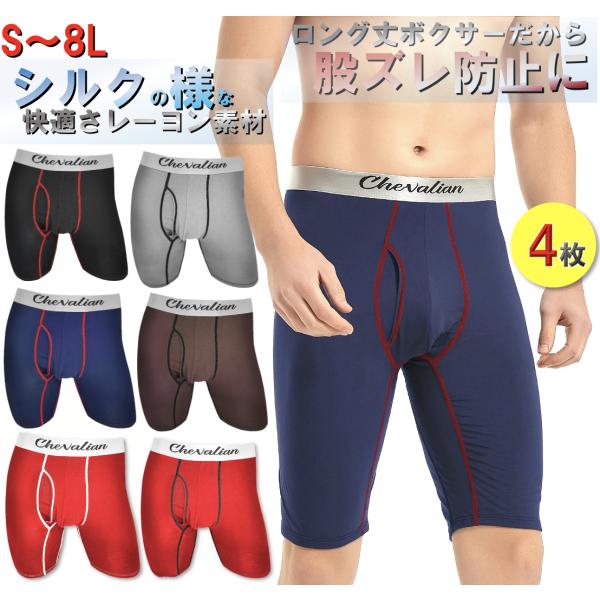ロングボクサーパンツ 4枚 セット メンズ ブランド 前開き ロング丈 S M L LL 3L 4L 5L 6L 7L 8L
