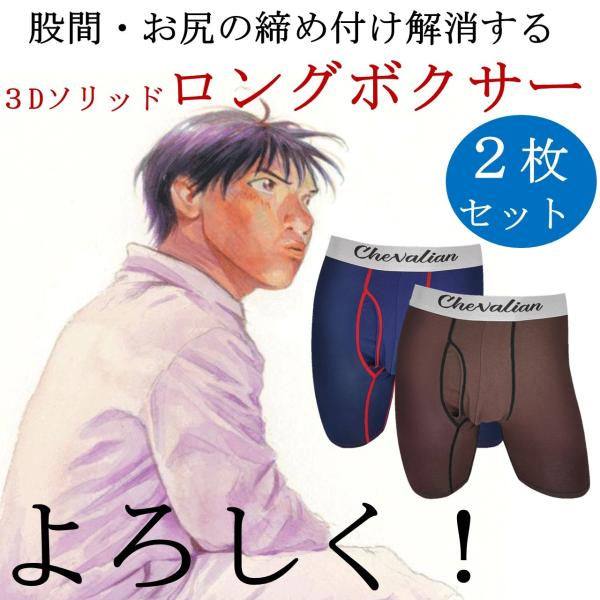 ロングボクサーパンツ 2枚 セット メンズ 男性 ブランド 前開き ロング丈 股上深め 赤 グレー S M L LL 3L 4L 5L 6L 7L 8L