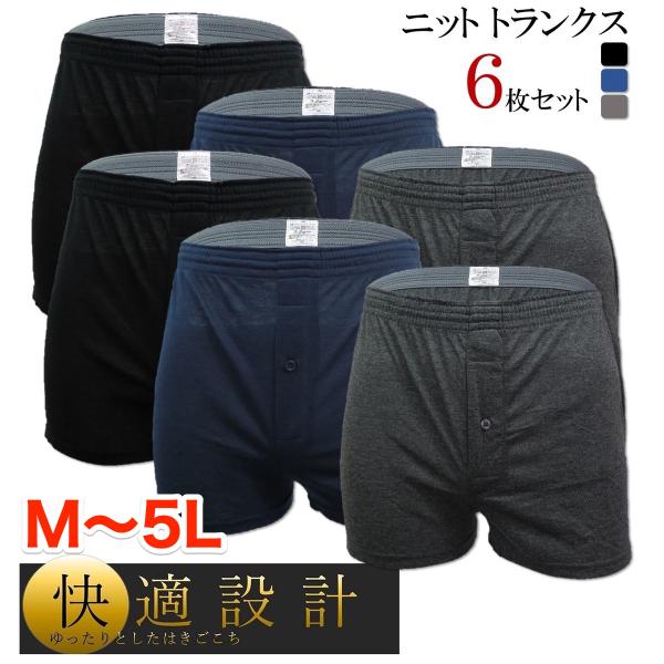 男性用下着 前開き ニット トランクス パンツ M L LL 3L 4L 5L メンズ 紳士 おしゃれ 送料無 下着 6枚セット