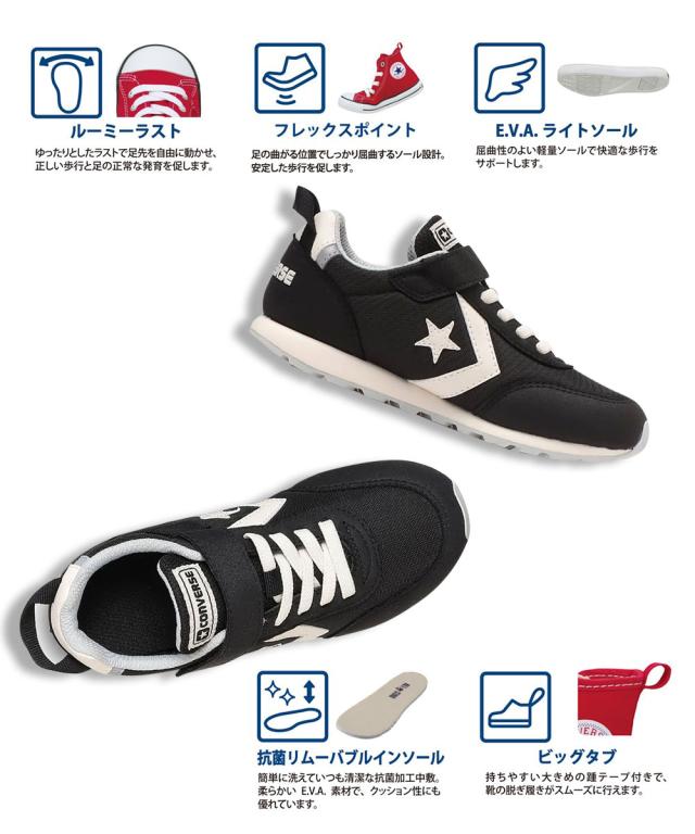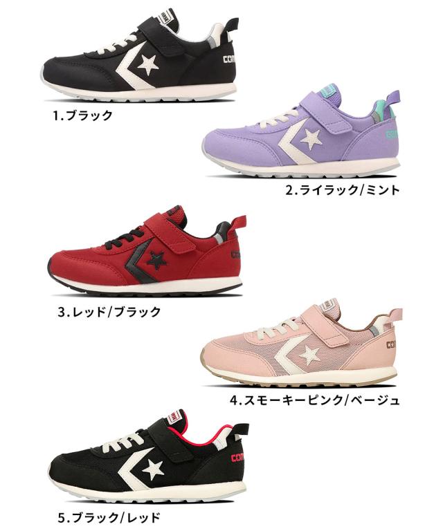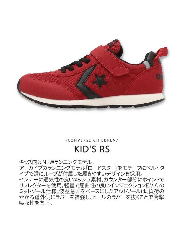 コンバース スニーカー キッズ 男の子 女の子 スニーカー 子供靴 ローカット 軽量 かわいい 面ファスナー 履きやすい 抗菌インソール リフレクター 反射板 キッズ RS 黒 ブラック 赤 レッド 紫 パープル KID'S RS